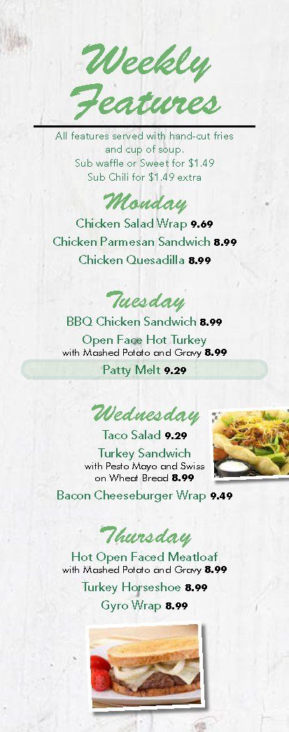 We have a wonderful selection of American and Italian Cuisine entrees, delicious sandwiches and wraps, delicate desserts and homemade soups and salads that are sure to satisfy. Check out our luncheon menu and daily specials.